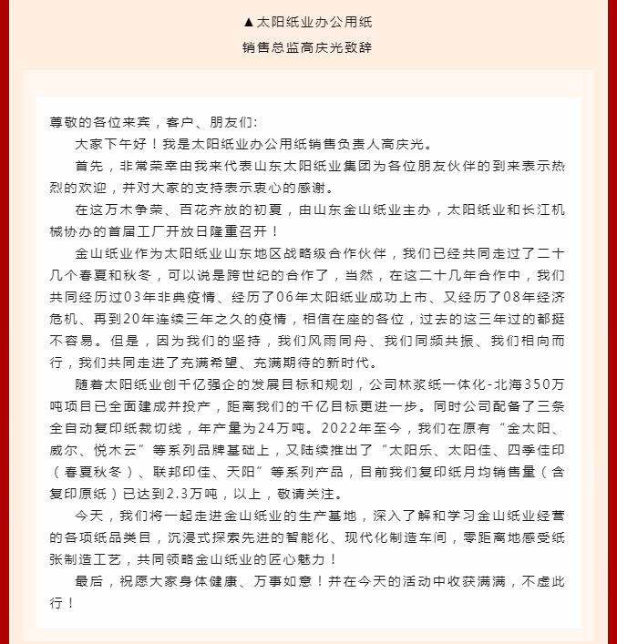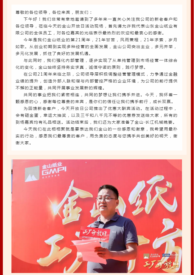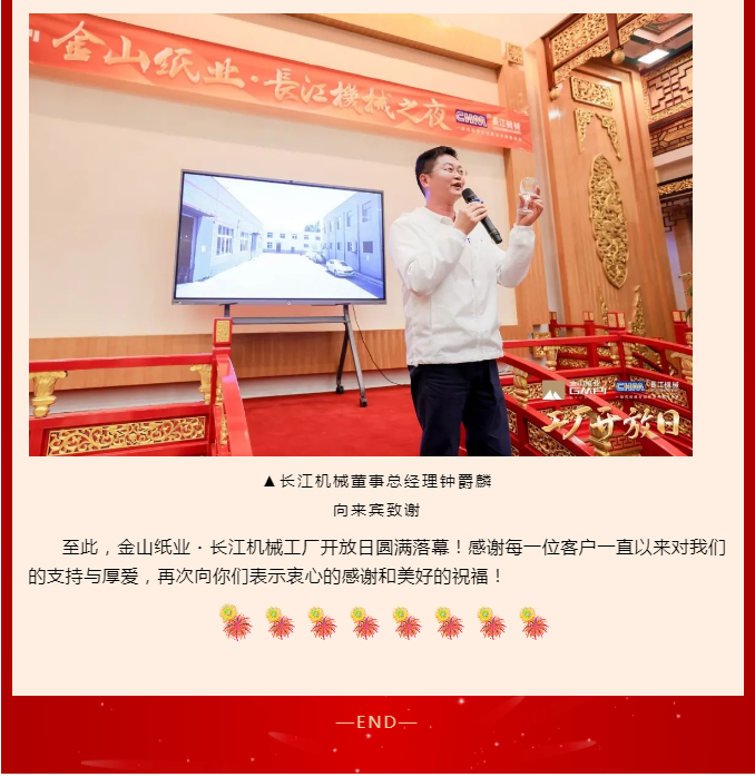 攜手并進(jìn) 共創(chuàng)未來丨熱烈祝賀金山紙業(yè)?長江機(jī)械工廠開放日圓滿舉辦